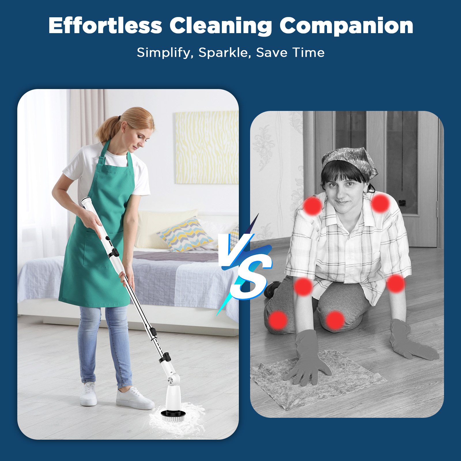- ✅ Retractable Handle for Comfort: Make cleaning a comfortable task with our electric spin scrubber featuring a retractable handle. Easily switch between two lengths to clean sinks and surfaces comfortably or reach those hard-to-access areas without bending over or kneeling. Let the brush handle the work for you.