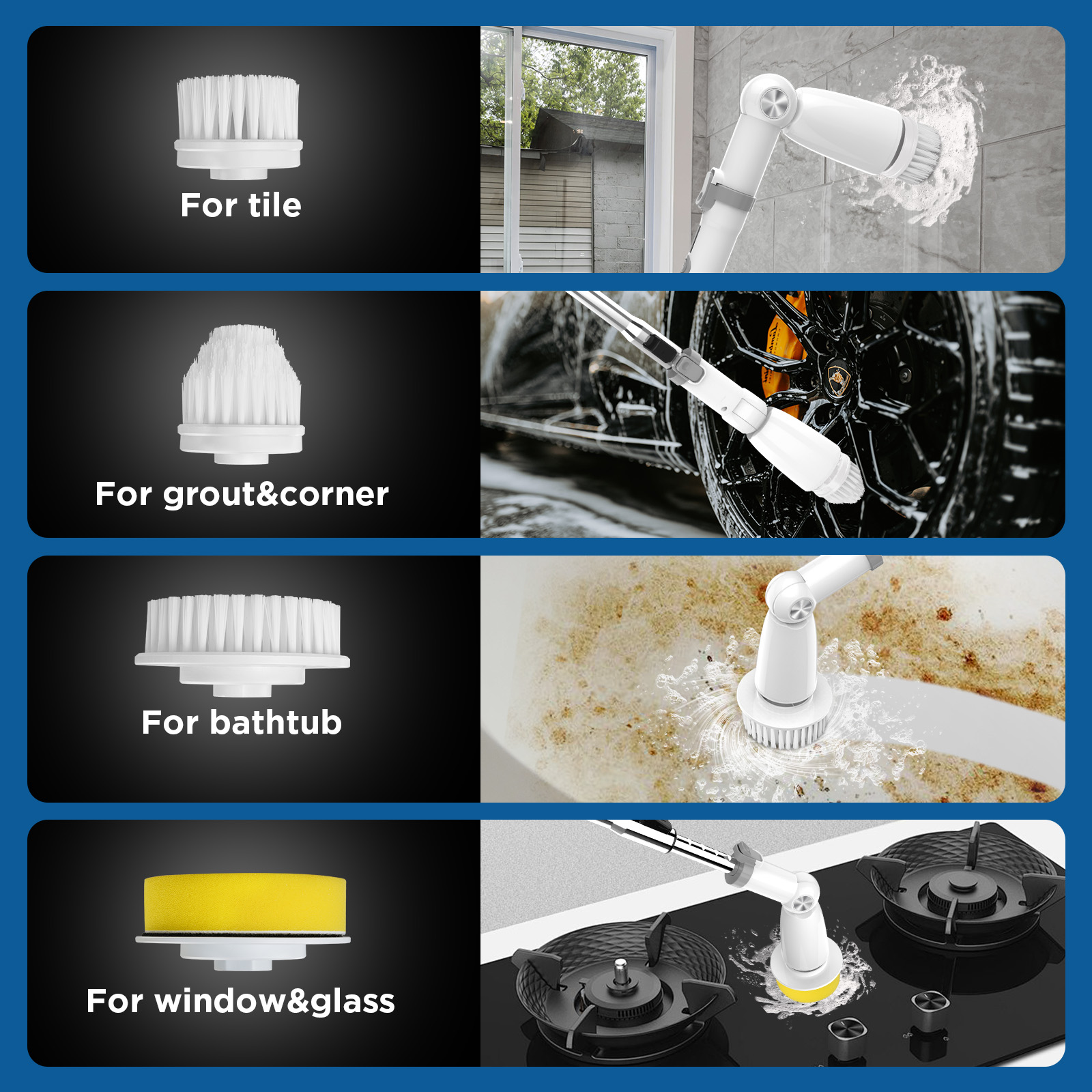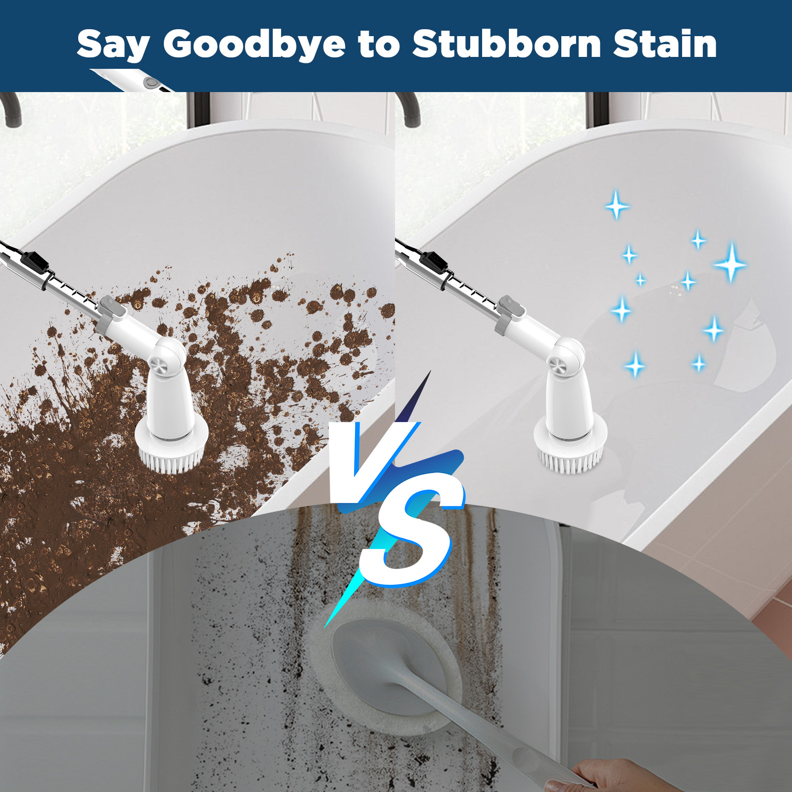 - ✅ Retractable Handle for Comfort: Make cleaning a comfortable task with our electric spin scrubber featuring a retractable handle. Easily switch between two lengths to clean sinks and surfaces comfortably or reach those hard-to-access areas without bending over or kneeling. Let the brush handle the work for you.