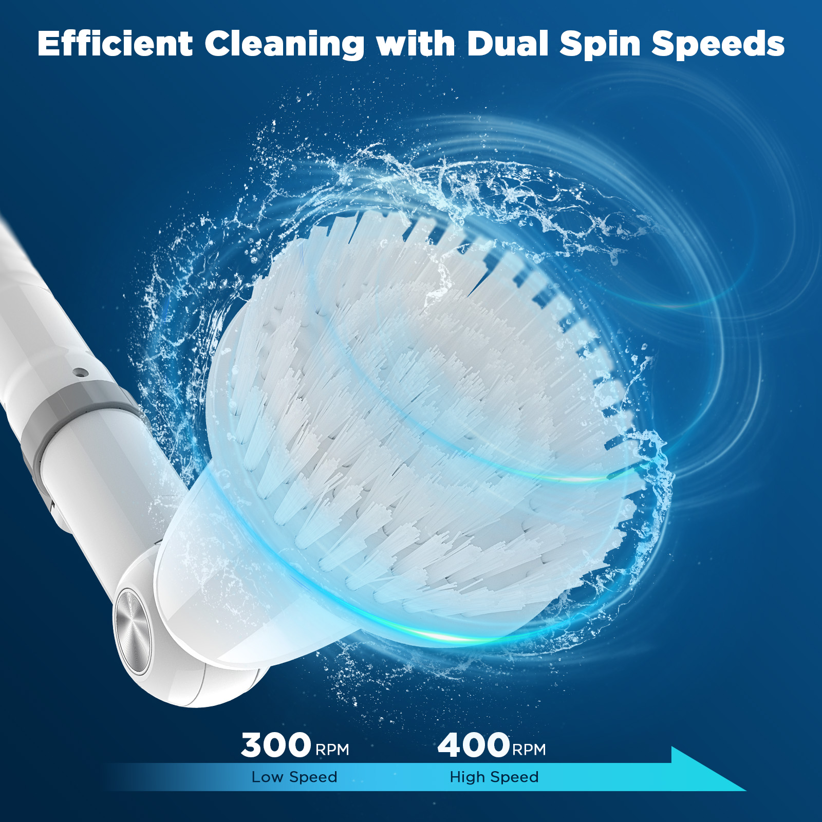 - ✅Efficient Cleaning with Dual Spin Speeds: Our electric cleaning brush offers optimal cleaning efficiency with two adjustable spin speeds. Select the 300 RPM mode for everyday cleaning or switch to the powerful 400 RPM mode for tackling tough grime and stains like soap scum and grout effortlessly.